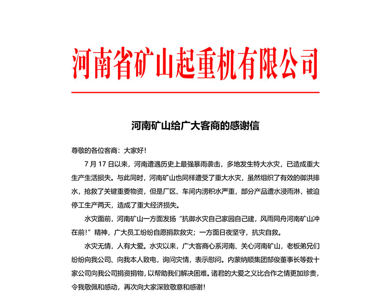 洪災難隔桑梓情,樹高千尺不忘根。連日來,河南大部分區域遭遇洪澇災害,河南災情牽動人心,救援迫在眉睫。河南礦山通過長垣市慈善機構捐款200萬元,用于河南防汛救災!.........