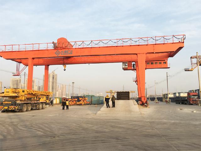 吊具的開閉鎖動作和伸縮由司機在操縱室操作。同時,為了適應不同的集裝箱堆放方向和集裝箱拖車行走方向,集裝箱吊具可設計有旋轉機構,可使集裝箱任意旋轉,以提高裝卸效率。本起重機專用于鐵路貨場裝卸、堆放20、40及45英尺國際標準集裝箱。本機配備伸縮式集裝箱吊具,用于吊運不同規格集裝箱。