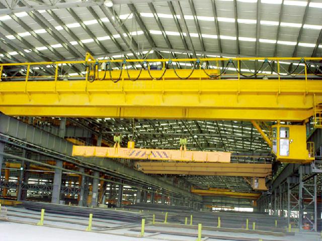 產(chǎn)品說(shuō)明: 本起重機(jī)采用掛梁吊運(yùn)長(zhǎng)件鋼坯、板材、棒材、盤圓等物品,配置電磁吸盤或夾鉗或特殊群鉤進(jìn)行吊裝,主要由箱形橋架、起重小車、大車運(yùn)行機(jī)構(gòu)、司機(jī)室和電氣控制系統(tǒng)組成...